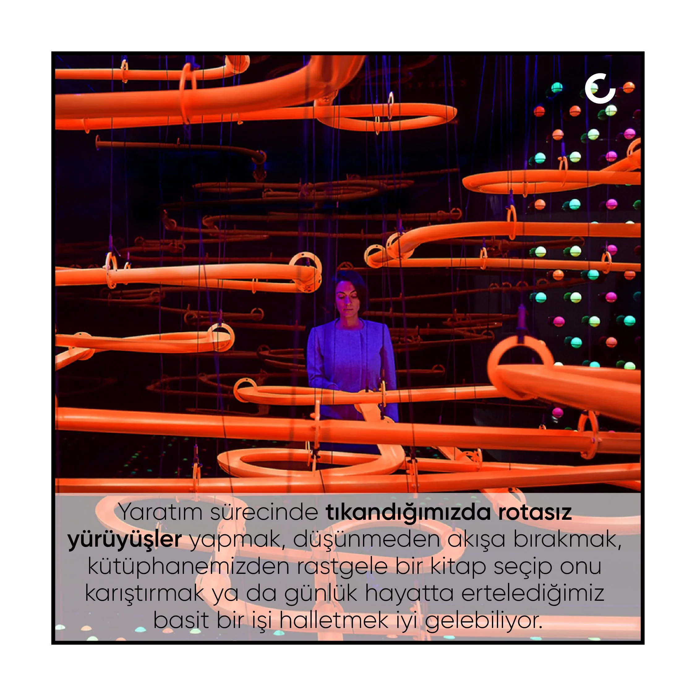 Doğada ya da bazen şehrin en kalabalık yerlerinde rotasız yürüyüşler yapmak düşünmeden akışa bırakmak. Tabi bunu her zaman yapmak mümkün olmuyor. O zaman yıllar içinde oluşturduğumuz kütüphaneden rastgele bir kitap seçmek ve onu karıştırmak ya da günlük hayatta ertelediğimiz basit bir işi halletmek gibi şeyler olabiliyor.